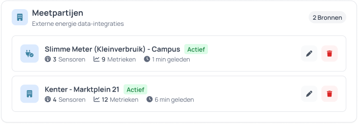 Directe integratie met alle meetbedrijven zoals Kenter, Fudura, Joulz, en meer...